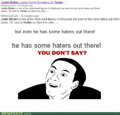 I guess what I am trying to say overall(besides my burning dislike of Bieber) is that some advertising just doesn't make sense if I have to watch an advert I wish it would at least be targeted to meet the requirements of myself as a person, or at least exist within the common boundaries of genre, say if I search queen and I get an advert for journey's greatest hits, then maybe I would not care as much. But being submitted to Bieber's music when all I want is Freddie Mercury's outrageous vocal range is wrong.